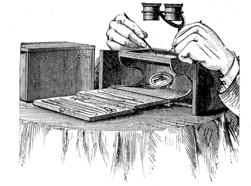 67 Difficulties formerly associated with the microscopic examination of flagellate forms of infusorial life have been overcome by improvements in the objectives, by the knowledge gained of the monad groups, and by the exhaustive researches of Drs. Drysdale and Dallinger, whose joint investigations were published in the Journal of the Royal Microscopical Society, 1873-75. By employing the highest and most perfectly constructed powers of the microscope, and devoting an enormous amount of time and attention to unravelling mysteries so long associated with the production of the lowly organised flagellate organisms, monads, and patiently watching hour by hour, the life-history of numerous species of these minute infusorial animalcules were obtained. Not only was it discovered that these organisms increased indefinitely by fission, but that under certain conditions two or more individuals were united into encystments, and whose contents broke up into a greater or less number of spore-like bodies, were speedily developed into the parent type. In the examination of these minute bodies, it has been found that talc-films, that is, talc split into extremely fine laminæ, offer the best kind of cover, in fact, supersede ordinary glass covers, and possess an advantage, that of bending readily, thus permitting the objective to be brought close down upon the object.