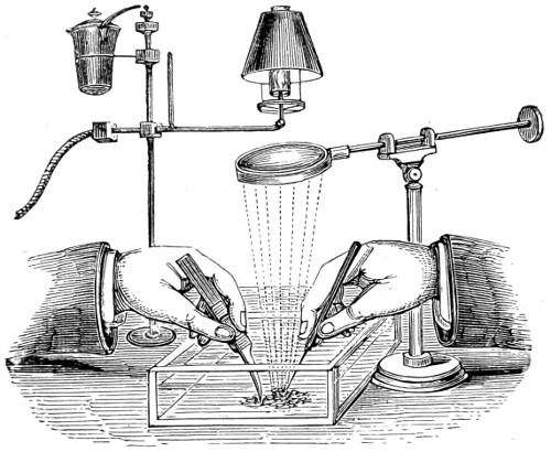 By “conducting the eye to the confines of the visible form,” the Microscope proves an effective auxiliary in defining the geometric properties of bodies. Its influence as an instrument of research upon the structure of bodies has been compared to that of the galvanic battery, in the hands of Davy, upon Chemistry. It detects the smallest structural difference, heretofore inappreciable, and, as an ally of Chemistry, enables us to discover the very small changes of form and colour effected by test-fluids upon solids; and dissects for us, so to speak, the most multiplex compounds. It opens out to the mind an extended and vast tract, opulent in wonders, rich in beauties, and boundless in extent.