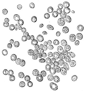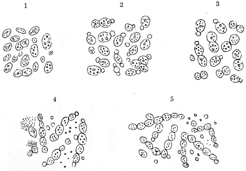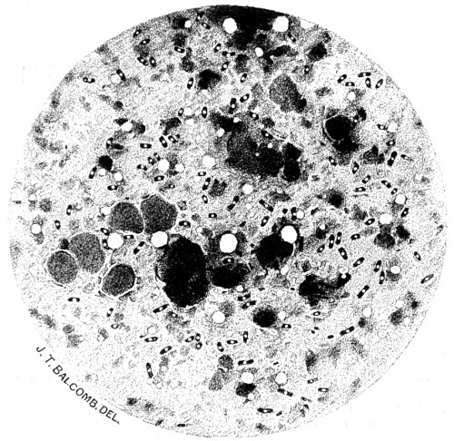 52 There are several other kinds of bacteria infesting milk, some of which are motile, others non-motile, producing acidity and colouring matter, as B. prodigiosus, red-milk; B. synxanthus, yellow milk; B. lactis aerogens, which are pathogenic; B. lactis albus, which coagulate milk; and another form, which is productive of slimy or ropy-milk.