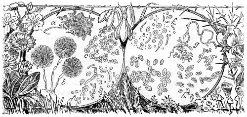 | Microscopic Forms of Life—Thallophytes, Pteridophyta, Phanerogamæ—Structure and Properties of the Cell—Pathogenic Fungi and Moulds—Parasitic Diseases of Plants, Man, and Animals—Industrial Uses of Fungi and Saccharomycetes—Desmidiaceæ and Diatomaceæ—Lichens, Mosses, Ferns, Flowering Plants | 353 |