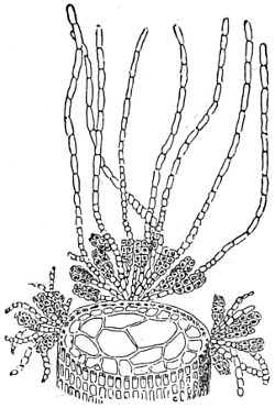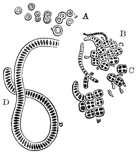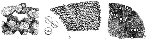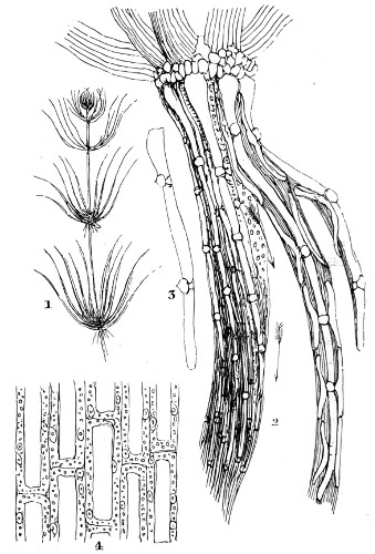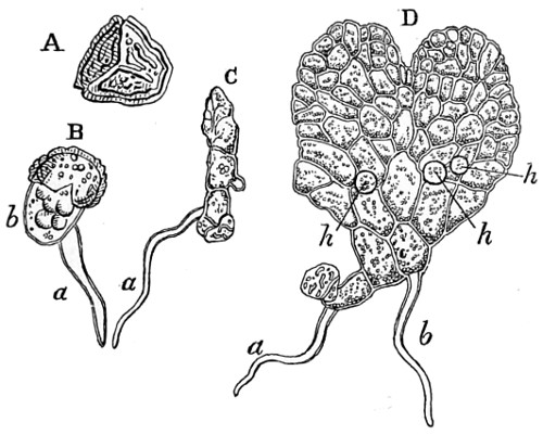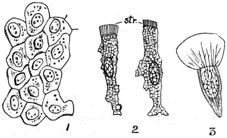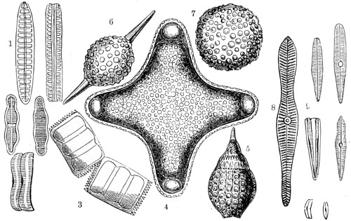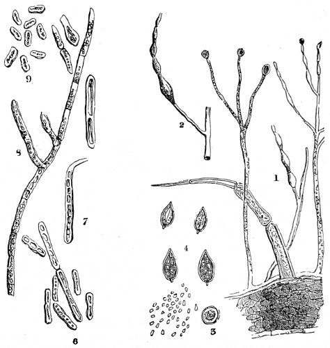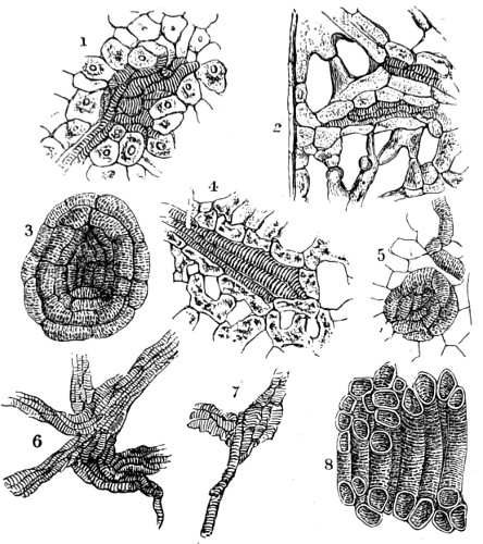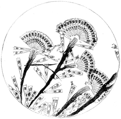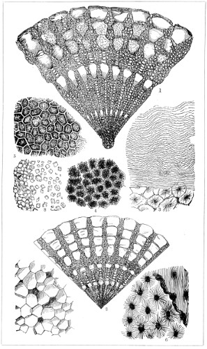 62 For more detailed information on the structure and classification of unicellular plants, and cryptogams, the reader is referred to Ralfs’ “British Desmidaceæ”; Smith’s “British Diatomaceæ”; Goebel’s “Outlines of Classification and Special Morphology”; Berkeley’s “Cryptogamic Botany”; De Bary’s “Comparative Anatomy of the Phaneragams and Ferns”; Professor Marshall Ward’s “Sach’s Physiology of Plants,” and numerous memoirs on Fungi; and Bower and Sidney Vine’s “Course of Practical Instruction in Botany,” a most instructive book on the histology of plants.