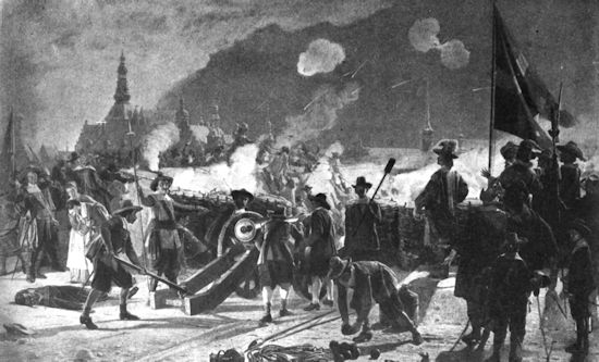 The ship was left. If that went back, all was lost. Happily both captain and mate were prisoners ashore. Four boat-loads of islanders, with arms carefully stowed under the seats, went out with the mate of the Spes, who was given to understand that if he as much as opened his mouth he would be a dead man. They boarded the ship, taking the crew by surprise. By night the last enemy was comfortably stowed, and the ship on her way to Rönne, where the prisoners were locked in the court-house cellar, with shotted guns guarding the door. Perhaps it was the cruelties practised by Swedish troops in Denmark that preyed upon the mind of Jens Kofoed when he sent the parson to prepare them for death then and there; but better counsel prevailed. They were allowed to live. The whole war cost only two lives, the governor’s and that of a sentinel at the castle, who refused to surrender. The mate of the Spes and two of her crew contrived to escape after they had been taken to Copenhagen, and from them Karl Gustav had the first tidings of how he lost the island.
