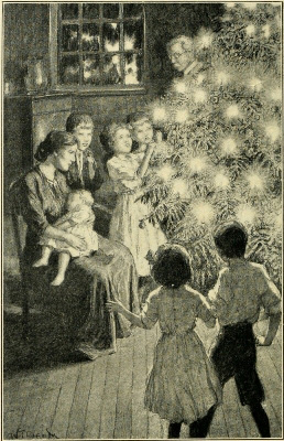 Early twilight was setting in on the Holy Eve. In the streets of the city stirred the bustling preparation for the holiday. The great stores were lighting up, and crowds of shoppers thronged the sidewalks and stood stamping their feet in the snow at the crossings where endless streams of carriages passed. At a corner where two such currents met sat an old man, propped against a pillar of the elevated road, and played on a squeaky fiddle. His thin hair was white as the snow that fell in great soft flakes on his worn coat, buttoned tight to keep him warm; his face was pinched by want and his back was[Pg 12] bent. The tune he played was cracked and old like himself, and it stirred no response in the passing crowd. The tin cup in his lap held only a few coppers.