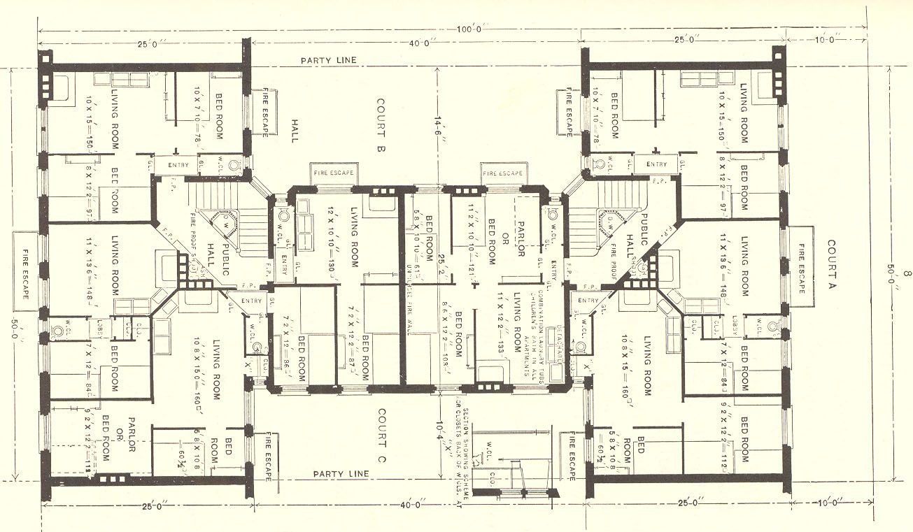 - Plan of a Typical Floor of the Competition in the C. O. S. Plans of Model Tenements 150