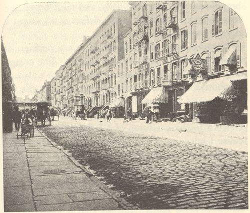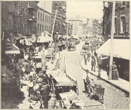 Footnote 18: Police census of 1900, block bounded by Canal, Hester, Eldridge, and Forsyth streets: size 375 Ã 200, population 2969, rate per acre 1724. Block bounded by Stanton, Houston, Attorney, and Ridge streets: size 200 Ã 300, population 2609, rate per acre 1894.[Back to Main Text]