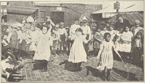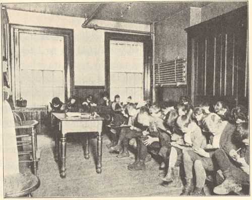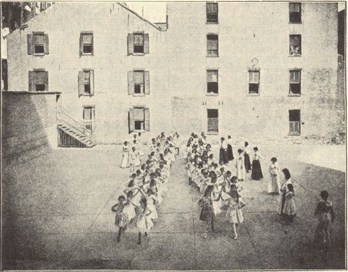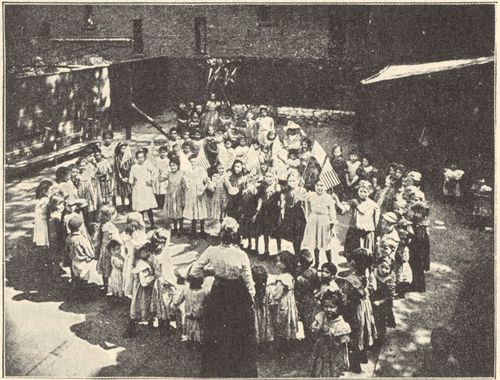Footnote 13: The first school census was taken in 1895 by order of the legislature. It showed that there were 50,069 children of school age in New York City out of school and unemployed. The number had been variously estimated from 5000 to 150,000.[Back to Main Text]