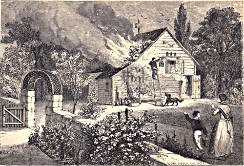 Just then the upper beam, which supported the balancer, fell off, and the plank, with the boys on it, came to the ground. There was now a great outcry. Georgie’s father and some of the carpenters came to see if the boys were hurt. They were not seriously hurt, but the accident occasioned quite an interruption to the raising.
