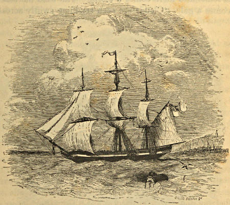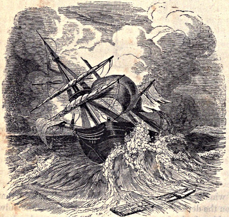 The anchor of the ship is seen in the engraving hanging over the bow. But the anchor, in such a case as this, is useless. The water is too deep in the middle of the lake for it to reach the bottom; and, besides, if it were possible to anchor the vessel in such a place, it would do more harm than good, for any confining of the ship, in such a sea, would only help the waves to fill it the sooner.