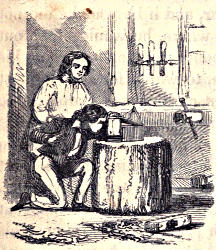 His father would, in fact, have sent him away entirely, were it not that he was wanted from time to time to do an errand, or fetch a tool. These errands, however, he did very slowly and reluctantly, so that he was of little service. Finally, he proposed to the boys that they should make a balancer, and they did so. They put up one short beam of wood upon another, and then, placing a plank across, two of the boys got on, one at each end, and began see-sawing up and down. This was their balancer.