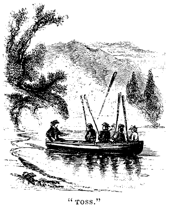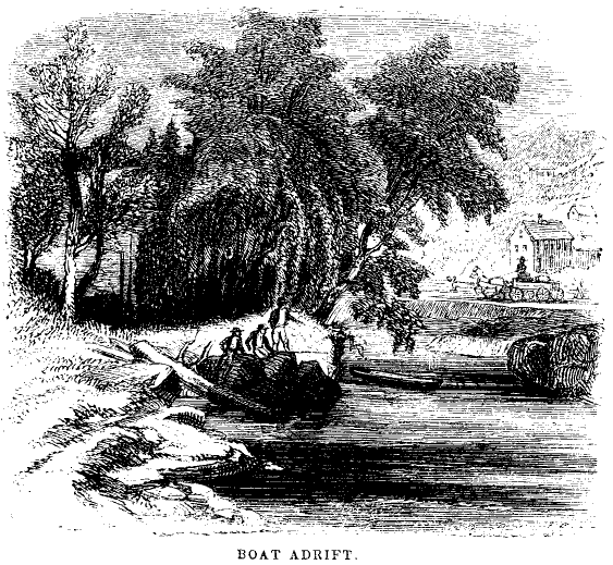 Now it happened that the river, in the part of its course over which this voyage had been performed, took a great circuit, and though they had followed its course for more than a mile, they were now drawing near to a place which was not very far from Forester's father's house,--being about as much below it, as the place where the boat belonged in the mill-pond was above it. As they approached the point where the river turned again, Marco, who was looking out before, saw a sort of landing, where there was a man standing, together with a yoke of oxen. It was just sunset when they approached this spot. When they arrived at it, the whole mystery was explained, for they found that the man was James, who lived at Forester's father's, and the oxen were his father's oxen. James had come down, under an appointment which Forester had secretly made with him, with the oxen and a drag, and by means of them he hauled the boat across to the mill-pond again, by a back road which led directly across the pastures, and lanched it safely again into the water close to the dwelling of its owner. So the boys had, as it were, the pleasure of sliding down hill, without the labor of drawing their sleds up again.