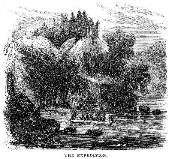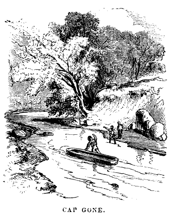 This plan was decided upon, and so, when the snow squall was entirely over and the sun had come out Marco and Forester, taking their departure from the great tree and guiding their course by the sun, the travelers set out, proceeding as nearly in a straight line as possible, intending to go on in that manner until they should come to some stream, and then to follow the stream down to the river. The plan succeeded perfectly well. They soon descended into a valley, where they found a little brook flowing over a bed of moss-covered stones. They followed this brook down for about a mile, when they came to a junction between the brook that they were following and another one. After this junction of course the stream was larger, and in many places they found it difficult to get along. The way was encumbered with bushes, rocks, and fallen trees, and in one place the stream flowed in a foaming torrent through the bottom of a deep chasm, with sides rising directly out of the water. Here the travelers were obliged to find a way at a distance from the brook--guiding themselves, however, by the sound of its roaring. After passing the chasm, they got back to the stream again.