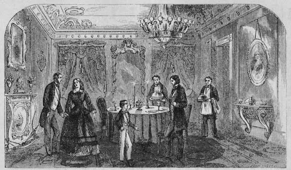 [8] Pronounced biftek-o-pom. This is a very favorite breakfast in France, and every where, in fact, throughout Europe. Mr. George liked it better than any thing else, not only for his breakfast, but also for his dinner. It consists of very tender beefsteaks, deliciously seasoned, and accompanied with sliced potatoes, fried in a peculiar manner, and arranged all around the margin of the dish.