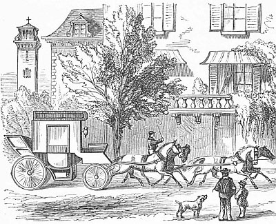 [A] The malle post is a sort of despatch carriage, that takes the mails. It can take also two or three passengers. They change horses very often with the malle post, and drive very fast.