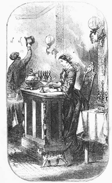The aspect of the room, when Rollo entered it, was very imposing. It was lined on all sides with mirrors, with carved and gilded pilasters between them, and a richly ornamented cornice above. The ceiling, overhead, was panelled, and was painted in fresco with the most graceful and elegant devices. The floor was laid in a beautiful mosaic of wood, brilliantly polished. The room was filled with tables, all set out for[Pg 224] dinner in the nicest manner, with silver plate, elegant porcelain, and glasses that reflected the light in the most resplendent manner. A great many gay groups of ladies and gentlemen were seated at these tables, taking dinner; while the waiters, with snow-white napkins on their arms, were walking about in a rapid, but in a very gentle and noiseless manner, to wait upon them. At the back side of the room there sat two beautiful young women, behind a sort of counter, which was raised a little above the rest of the floor, so that they could survey the whole scene. It was the duty of these young women to keep the accounts of what was ordered at the several tables, and to receive the money which was paid by the guests, the waiters carrying it to them from the different parties at the tables when they paid. These ladies were the presiding officers, as it were, in the saloon; and the guests all bowed to them very respectfully, both when they came in and when they went away.