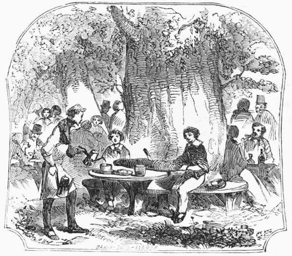 Mr. George selected a table for himself and the two boys, and they had an excellent dinner there. There was a printed book, large though thin, on every table, giving a list of the different articles—more than five hundred in all. From these Mr. George and the boys selected what they liked, and the waiters brought it to them.[Pg 225]