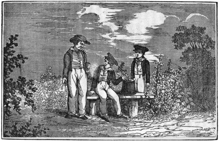 Page 122: he took hold of the flower-pot with both his hands, and slid it suddenly off of the seat.{the original had a footnote here, See Frontispiece. The frontispiece however is from the second chapter (Pruning), so this footnote has been removed}
