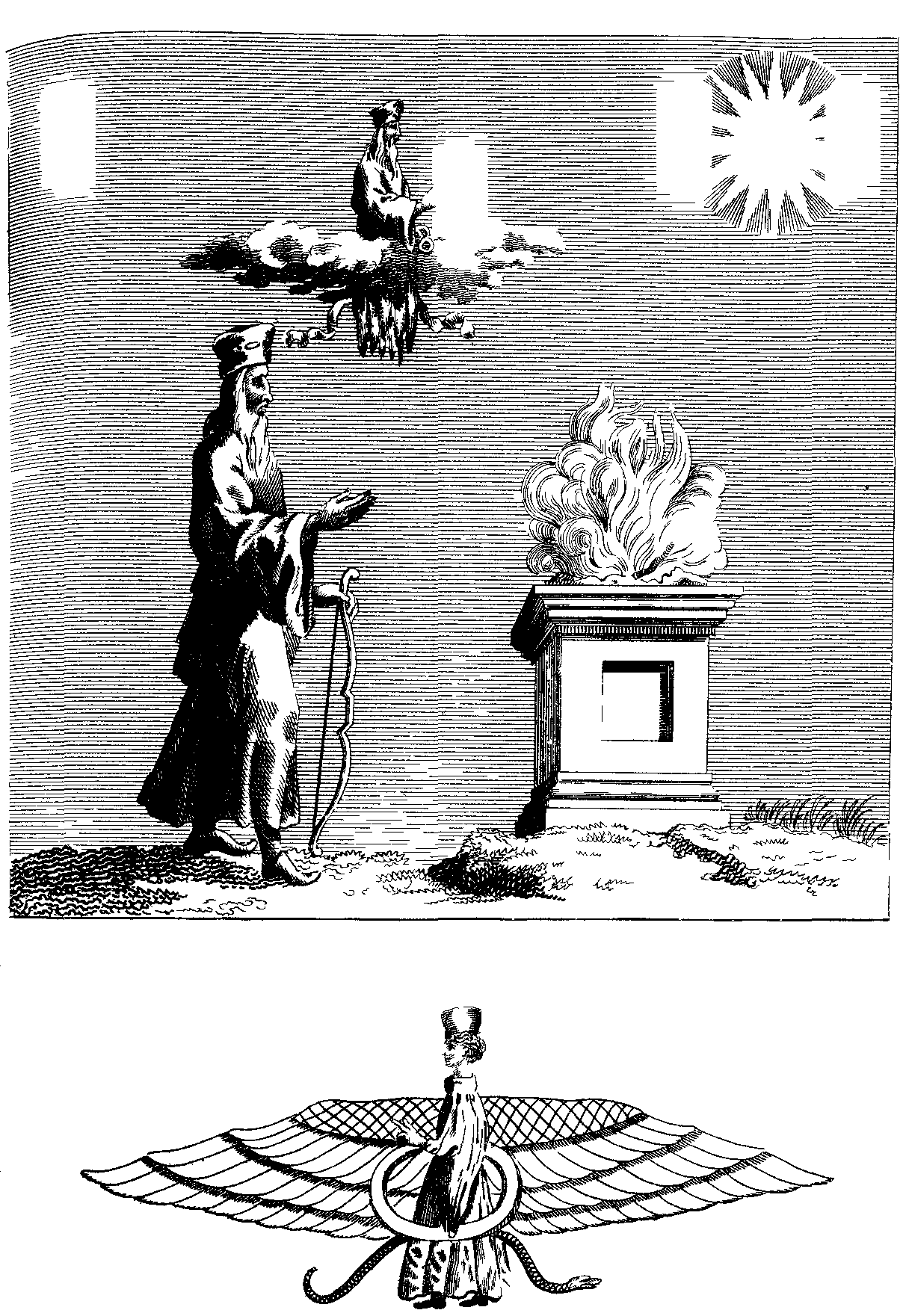 The Cunocephali are not to be found in Egypt only, but in India likewise; and in other parts of the world. Herodotus [65]mentions a nation of this name in Libya: and speaks of them as a race of men with the heads of dogs. Hard by in the neighbourhood of this people he places the Ακεφαλοι, men with no heads at all: to whom, out of humanity, and to obviate some very natural distresses, he gives eyes in the breast. But he seems to have forgot mouth and ears, and makes no mention of a nose: he only says, [66]Ακεφαλοι, ὁι εν στηθεσιν οφθαλμους εχοντες. Both these and the Cunocephali were denominated from their place of residence, and from their worship: the one from Cahen-Caph-El, the other from Ac-Caph-El: each of which appellations is of the same purport, the right noble, or sacred [67]rock of the Sun.