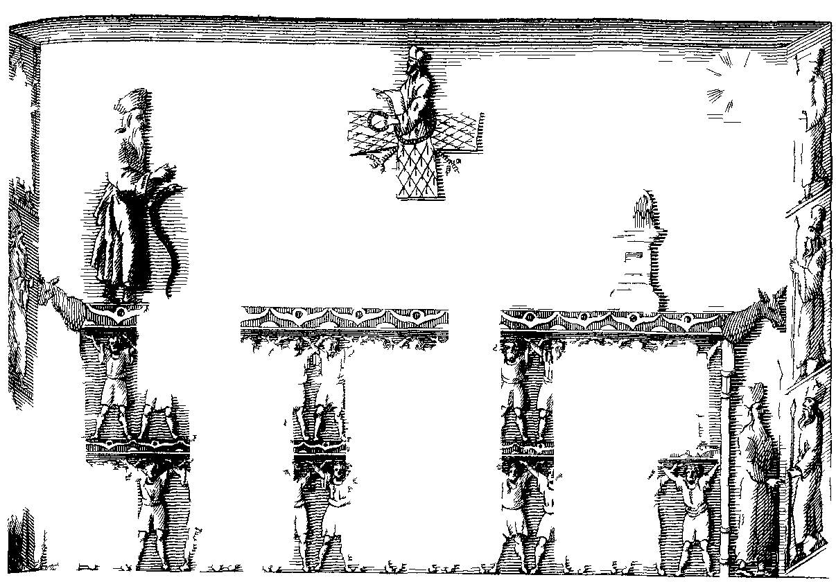 What is more remarkable, there were many gaping dogs in this temple; which are represented as so many statues, yet were endowed with life.
