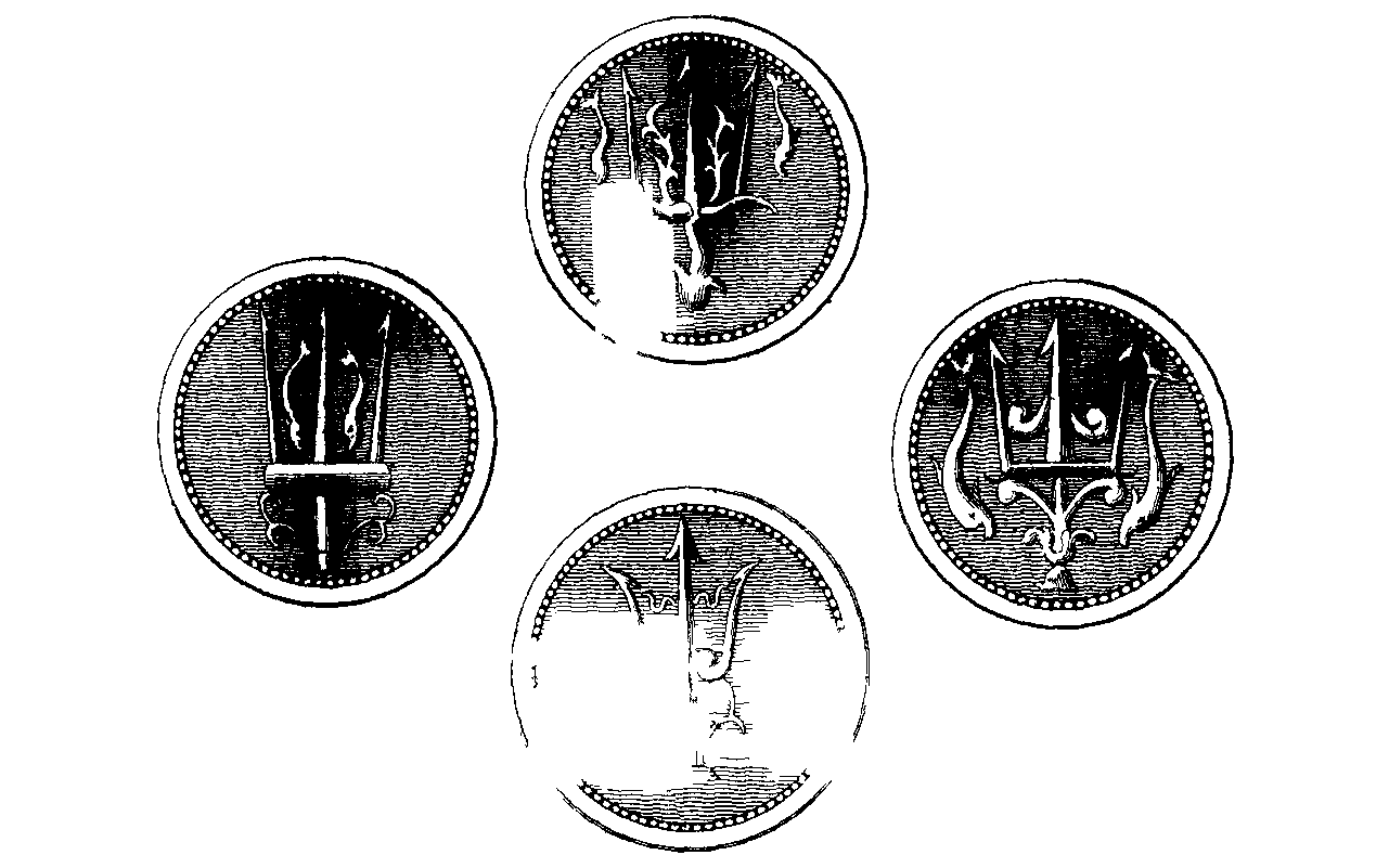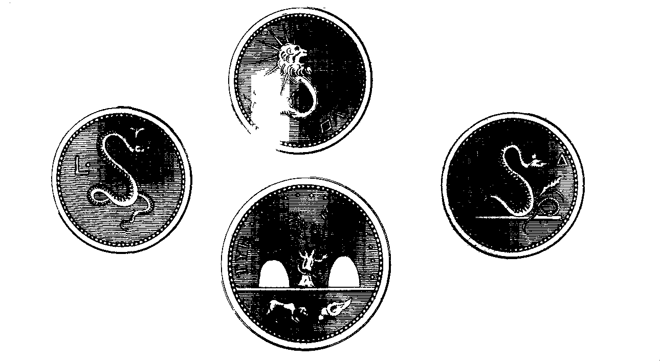 I cannot account upon any other principle than that upon which I have proceeded, for the strange representation of Apollo, and Bacchus, gaping with open mouths. So it seems they were in some places described. Clemens of Alexandria mentions from Polemon, that Apollo was thus exhibited: [85]Πολεμων δε κεχηνοτος Απολλωνος οιδεν αγαλμα. And we are told that a gaping[86] Bacchus was particularly worshipped at Samos. They were both the same as the Egyptian Orus; who was styled Cahen-On, Rex, vel Deus Sol; out of which Cahen-On the Grecians seem to have formed the word Χαινων: and in consequence of it, these two Deities were represented with their jaws widely extended. This term was sometimes changed to κοινος, communis: hence it is that we so often meet with κοινοι Θεοι, and κοινοι βωμοι, upon coins and marbles: also κοινος Ἑρμης. And as Hermes was the reputed God of gain, every thing found was adjudged to be κοινος, or common.