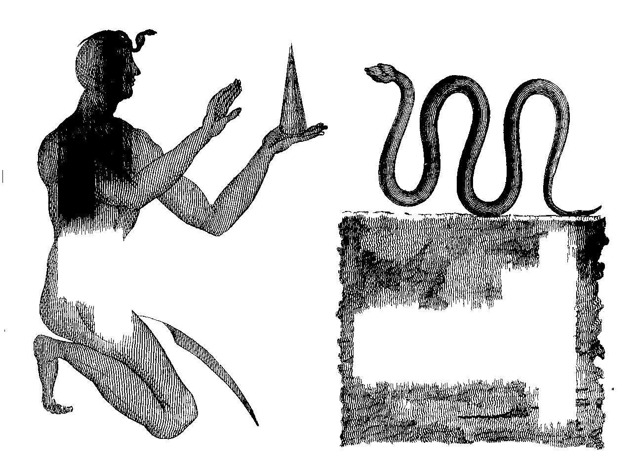 The name of the Deity, Canouphis, expressed also Canuphis, and Cnuphis, was compounded with this term. He was represented by the Egyptians as a princely person, with a serpent entwined round his middle, and embellished with other characteristics, relating to time and duration, of which the serpent was an emblem. Oph, and Ouph, signified a serpent in the Amonian language; and the Deity was termed Can-uph, from his serpentine representation. The whole species, in consequence of this, were made sacred to him, and styled Canyphian. To this Lucan alludes, when, in speaking of the Seps, he calls all the tribe of serpents Cinyphias pestes: