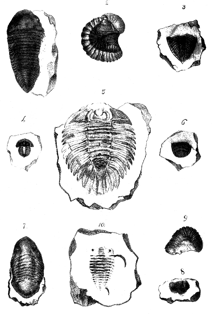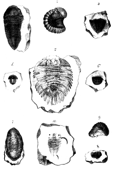 In some varieties of rocks there is often found the fossil remains of an animal which bears some resemblance to certain species of the crab. The back of this organic relic is commonly divided by two deep grooves or furrows, into three longitudinal lobes, and from this circumstance, the term Trilobite has been applied as a family name to distinguish this whole race of beings. This general appellation, however, though in most of the species, highly appropriate, is by no means applicable to all.