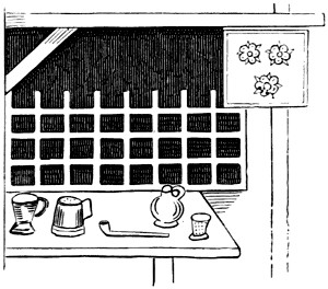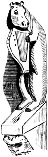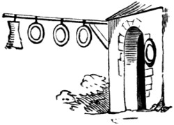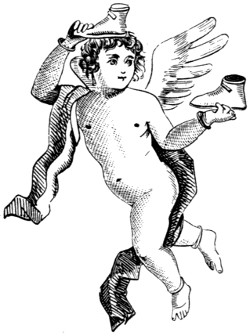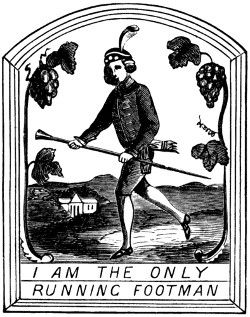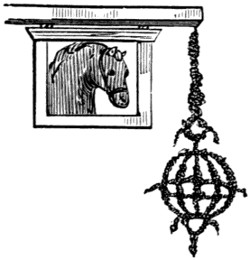 With the Romans only we begin to have distinct data. In the Eternal City, some streets, as in our mediæval towns, derived their names from signs. Such, for instance, was the vicus Ursi Pileati, (the street of “The Bear with the Hat on,”) in the Esquiliæ. The nature of their signs, also, is well known. The Bush, their tavern-sign, gave rise to the proverb, “Vino vendibili suspensa hedera non opus est;” and hence we derive our sign of the Bush,[2] and our proverb, “Good Wine needs no Bush.” An ansa, or handle of a pitcher, was the sign of their post-houses, (stathmoi or allagæ,) and hence these establishments were afterwards denominated ansæ.[4] That they also had painted signs, or exterior decorations which served their purpose, is clearly evident from various authors:—