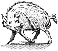 What we know of the Greek signs is very meagre and indefinite. Aristophanes, Lucian, and other writers, make frequent allusions, which seem to prove that signboards were in use with the Greeks. Thus Aristotle says: ὡσπερ επι των καπηλιων γραφομενοι, μικροι μεν εισι, φαινονται δε εχοντες πλατη και βαθη.[2] And Athenæus: εν προτεροις θηκη διδασκαλιην.[3] But what their signs were, and whether carved, painted, or the natural object, is entirely unknown.