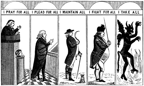 A great many signs, both single and compound, have been omitted. To have included all, together with such particulars of their history as could be obtained, would have required at least half-a-dozen folio volumes. However, but few signs of any importance are known to have been omitted, and care has been taken to give fair samples of the numerous varieties of the compound sign. As the work progressed a large quantity of material accumulated for which no space could be found, such as “A proposal to the House of Commons for raising above half a million of money per annum, with a great ease to the subject, by a TAX upon SIGNS, London, 1695,” a very curious tract; a political jeu-d’esprit from the Harleian MSS., (5953,) entitled “The Civill Warres of the Citie,” a lengthy document prepared for a journal in the reign of William of Orange by one “E. I.,” and giving the names and whereabouts of the principal London signs at that time. Acts of Parliament for the removal or limitation of signs; and various religious pamphlets upon the subject, such as “Helps for Spiritual Meditation, earnestly Recommended to the Perusal of all those who desire to have their Hearts much with God,” a chap-book of the time of Wesley and Whitfield, in which the existing “Signs of London are Spiritualized, with an Intent, that when a person walks along the Street, instead of having their Mind fill’d with Vanity, and their Thoughts amus’d with the trifling Things that continually present themselves, they may be able to Think of something Profitable.”