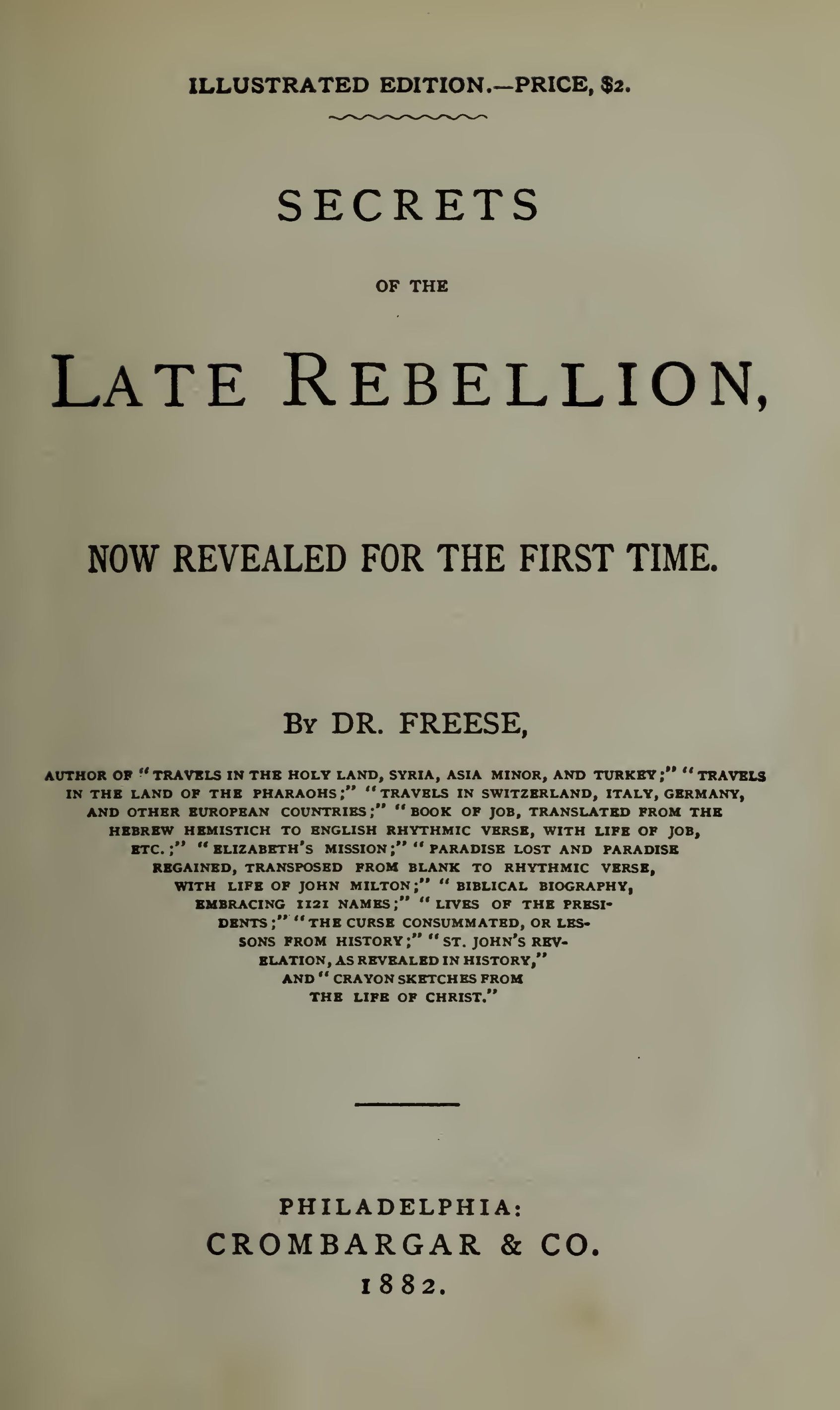 SECRETS OF THE LATE REBELLION, NOW REVEALED FOR THE FIRST TIME.