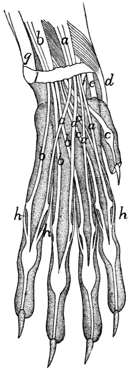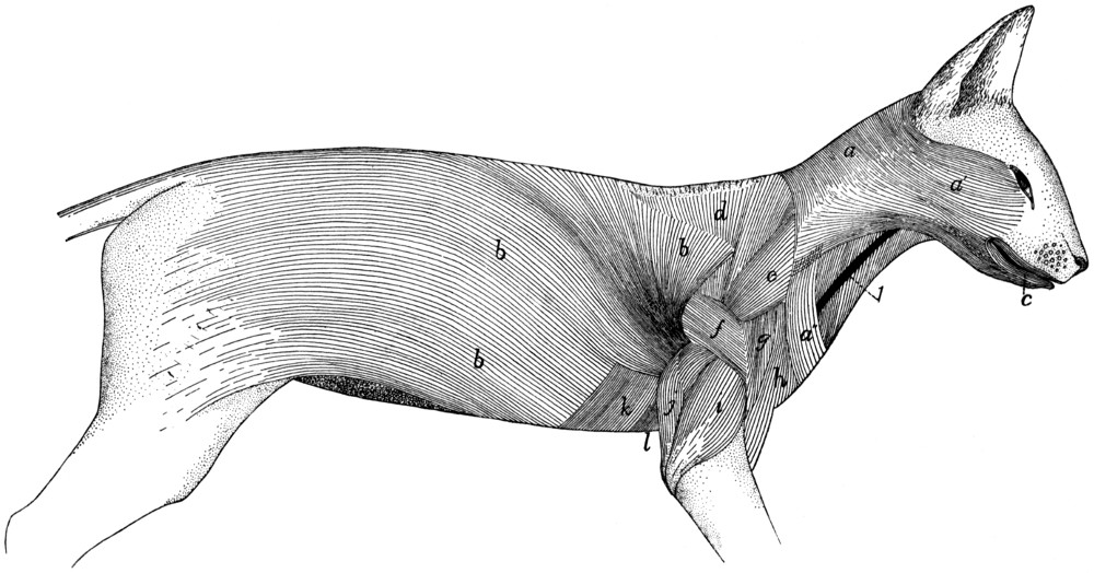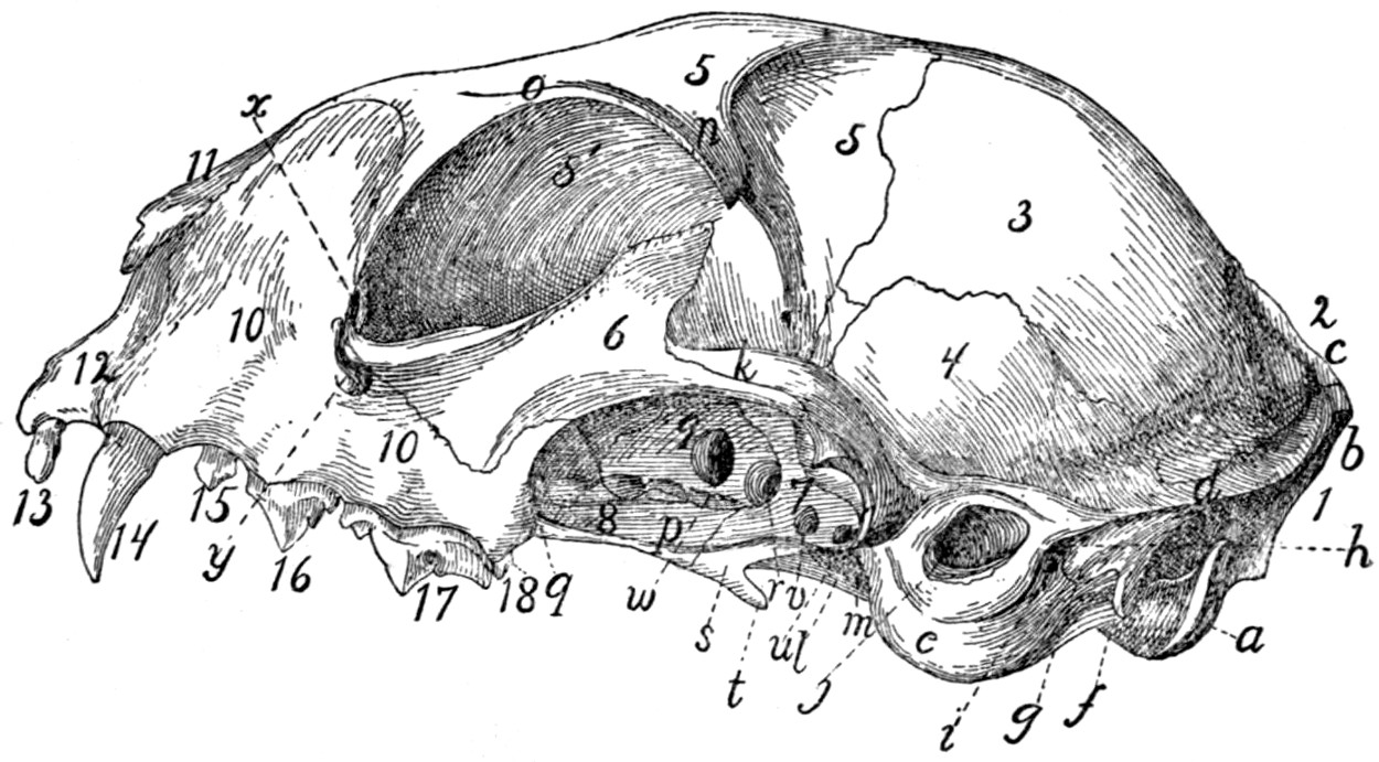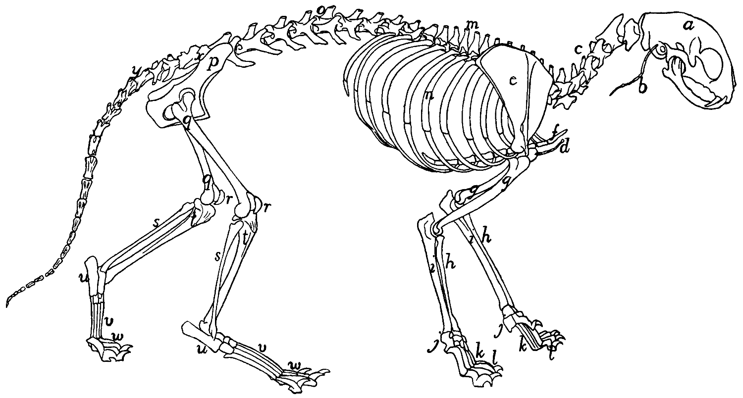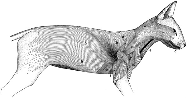 Except where the contrary is stated, the descriptions are based throughout on our own dissections and observations and are in no sense a compilation. For this reason we have not[v] thought it necessary to collect the scattered references to the anatomy of the cat that may occur in the literature. A collection of such references may be found in Wilder and Gage’s Anatomical Technology. In addition to the works already referred to, we have of course made use of the standard works on human and veterinary anatomy. Among these should be mentioned as especially useful the Anatomie des Hundes by Ellenberger and Baum. Other publications which have been of service in the preparation of the work are Windle and Parson’s paper On the Myology of the Terrestrial Carnivora, in the Proceedings of the Zoological Society of London for 1897 and 1898, T. B. Stowell’s papers on the nervous system of the cat in the Proceedings of the American Philosophical Society (1881, 1886, 1888) and in the Journal of Comparative Neurology (vol. I.), and F. Clasen’s Die Muskeln und Nerven des proximalen Abschnitts der vorderen Extremität der Katze, in Nova Acta der Ksl. Leop.-Carol. Deutschen Akademie der Naturforscher, Bd. 64.