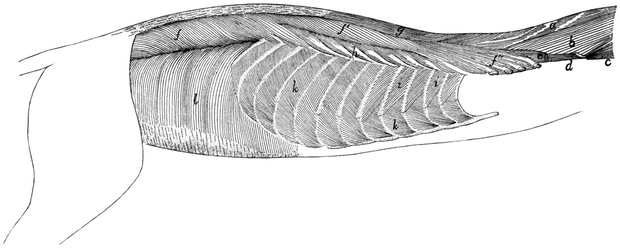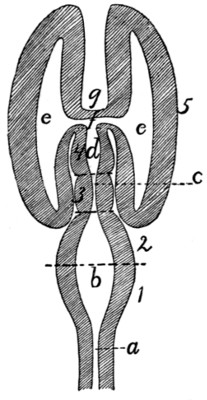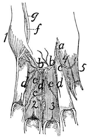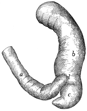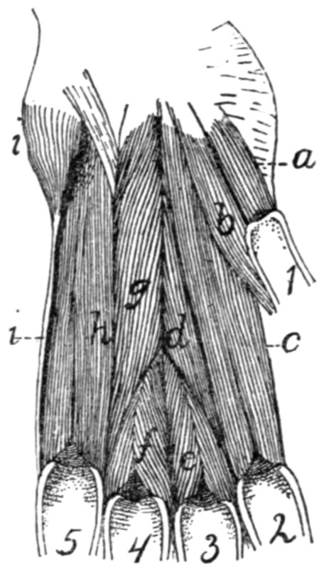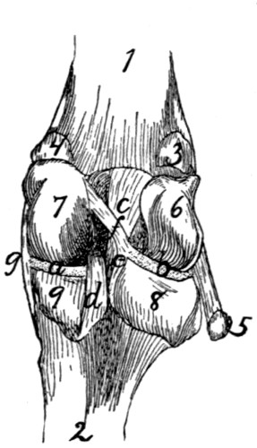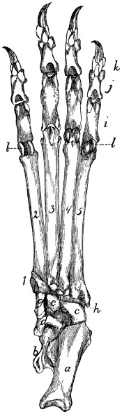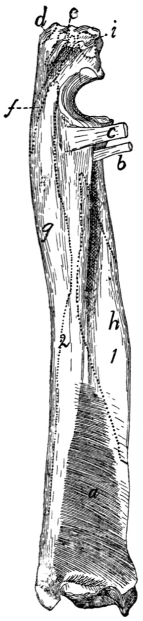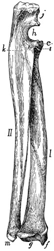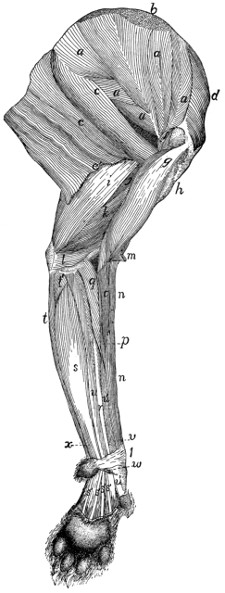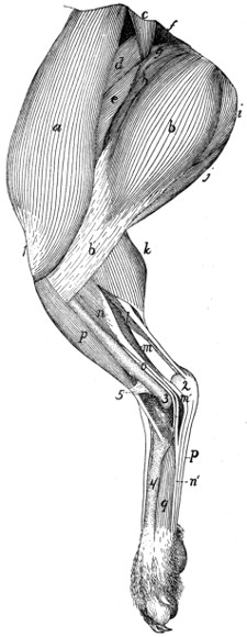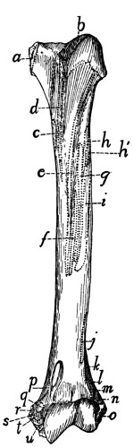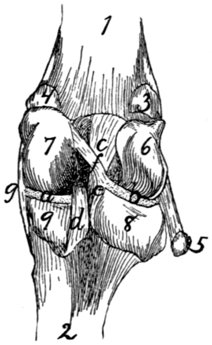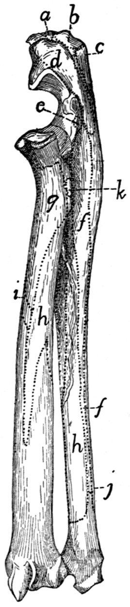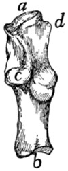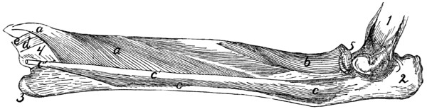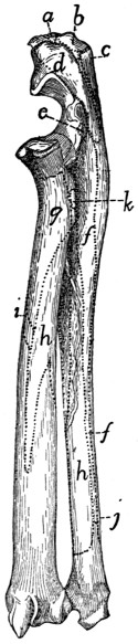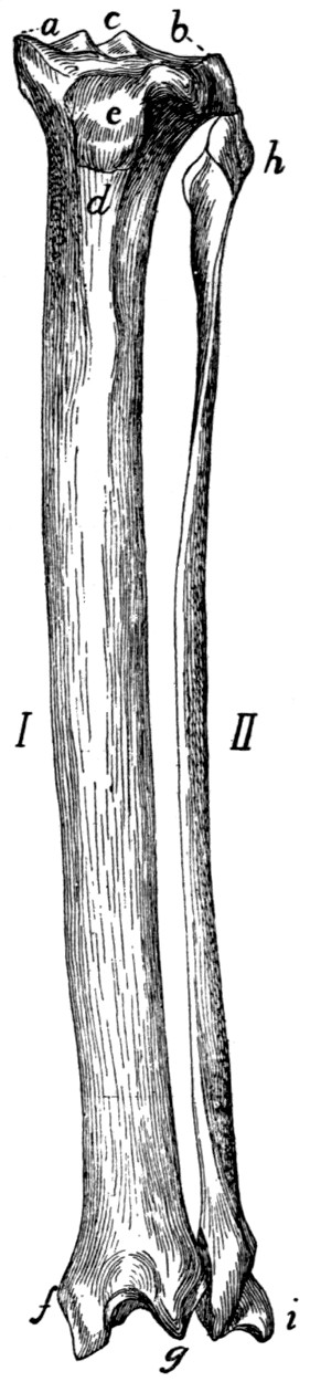 In describing the limbs the convexity of the joint (the elbow or knee) is considered as dorsal, the concavity being therefore[viii] ventral. Medial refers to that side of the limb which in the normal position is toward the middle of the body; lateral to the outer side. Terms of direction which are derived only from the structure of the limb itself are in some cases more convenient than the usual ones. In the fore limbs the terms radial (referring to the side on which the radius lies) and ulnar (referring to the side on which the ulna lies) are used; in the hind limbs the terms tibial and fibular are used in a similar manner. Distal means toward the free end of a limb or other projecting structure; proximal, toward the attached end.