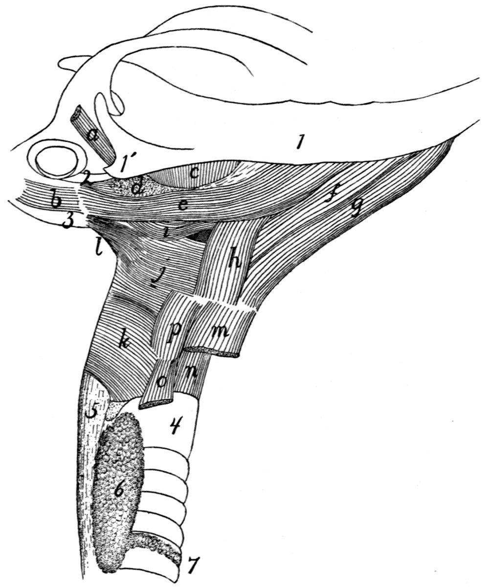 The differences (in wording and structure) between the Table of Contents and the headings in the text have not been rectified. The inconsistencies in the use, numbering and typography of section headings in the text have not been standardised, except as mentioned below. There is an entry for Muscles of the Soft Palate in the Table of Contents, but no such sub-section heading in the text.