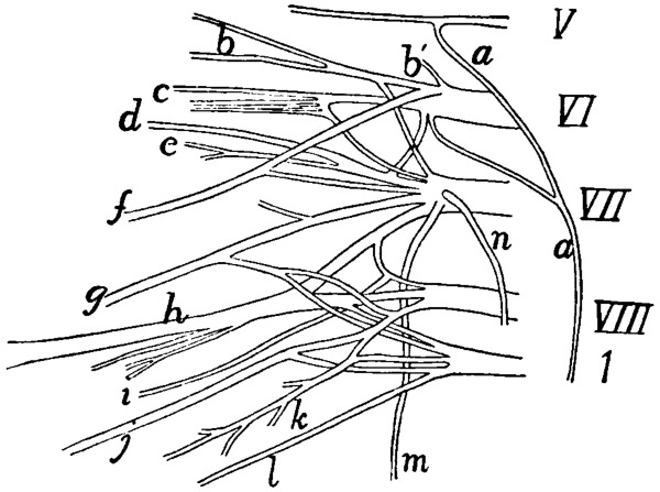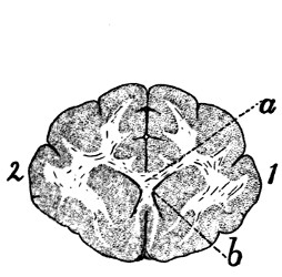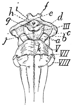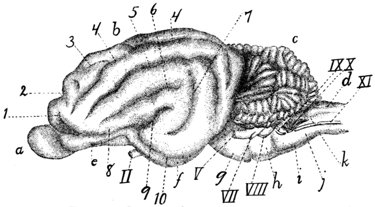 In deciding whether or not to use in a given case the BNA term many difficult cases arose. Will the common English name innominate bone (os innominatum) be replaced by the BNA term os coxæ or coxal bone? We have held this to be highly improbable, and have therefore used the term innominate bone, merely citing os coxæ (BNA) as a synonym. In the same way we have used centrum as a designation of a part of a vertebra, in place of corpus (BNA); premaxillary bone or premaxilla in place of os incisivum (BNA); malar bone in place of os zygomaticum (BNA); trapezoid as a name of one of the bones of the carpus, in place of os multangulum minus (BNA), etc. In other cases where it has seemed probable that the BNA term would come into common use, though now unfamiliar, this and the more common English expression are both used or used alternatively; such has been the case, for example, with the Gasserian ganglion or semilunar ganglion (BNA). In naming the cerebral sulci and gyri the system in use for man is not well fitted for bringing out the plan of those in the brain of the cat, so that it was necessary to reject the BNA names for these structures.
