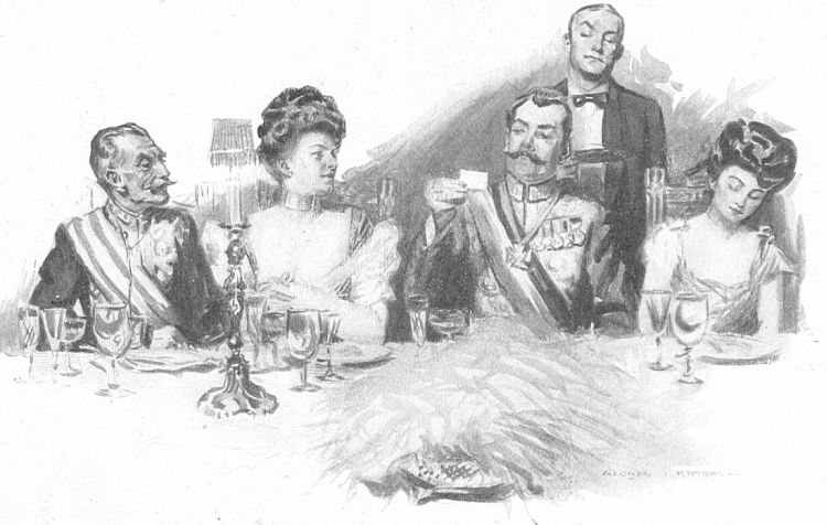 So, this is Washington! And here at dinner are the diplomatic representatives of all the nations. That is the British ambassador, that stolid-faced, distinguished-looking, elderly man; and this is the French ambassador, dapper, volatile, plus-correct; here Russia's highest representative wags a huge, blond beard; and yonder is the phlegmatic German ambassador. Scattered around the table, brilliant splotches of color, are the uniformed envoys of the Orient—the smaller the country the more brilliant the splotch. It is a state dinner, to be followed by a state ball, and they are all present.