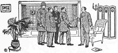 That evening at eight o'clock Detective Mallory, Hutchinson Hatch, Mr. Randolph, Mr. Meredith, Mr. Greyton, and Dollie Meredith gathered in a parlour of the Greyton home by request of The Thinking Machine. They were waiting for something—no one knew exactly what.
