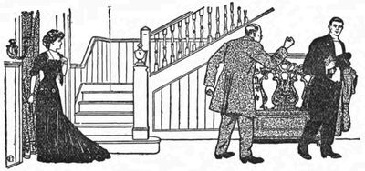 Mary Queen of Scots, Pocahontas, the Sultan of Turkey, and Mr. Micawber chatted amicably together in one language. Behind them came a figure which immediately arrested attention. It was a Burglar, with dark lantern in one hand and revolver in the other. A black mask was drawn down to his lips, a slouch hat shaded his eyes, and a kit of the tools of his profession swung from one shoulder.
