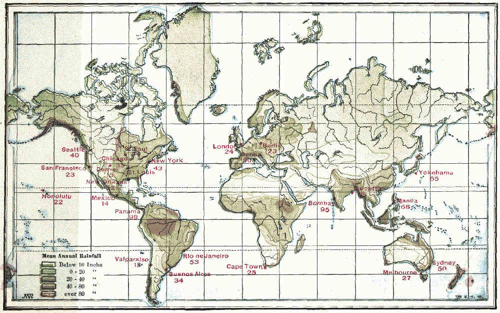 The low average in Australia, India, and Algeria is due mainly to lack of rainfall; in the United States and Russia, mainly to unskilful cultivation.