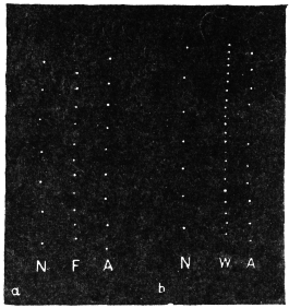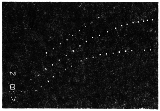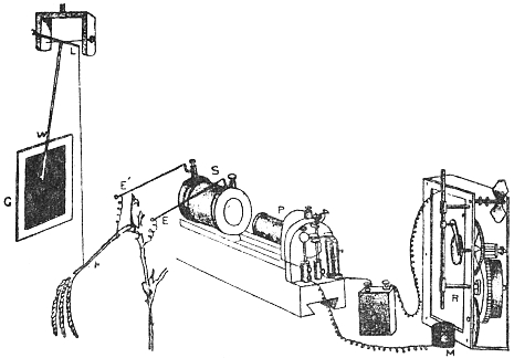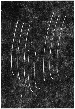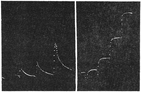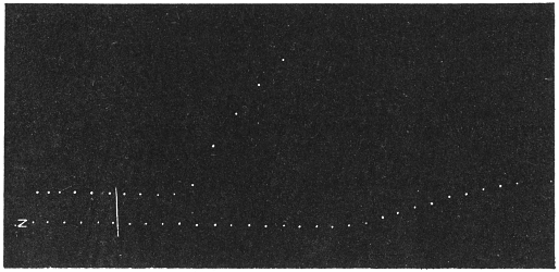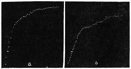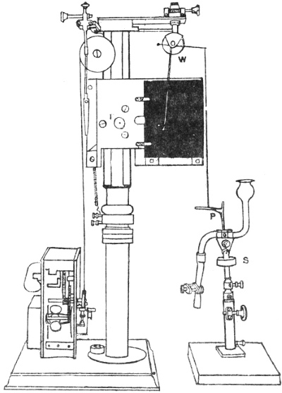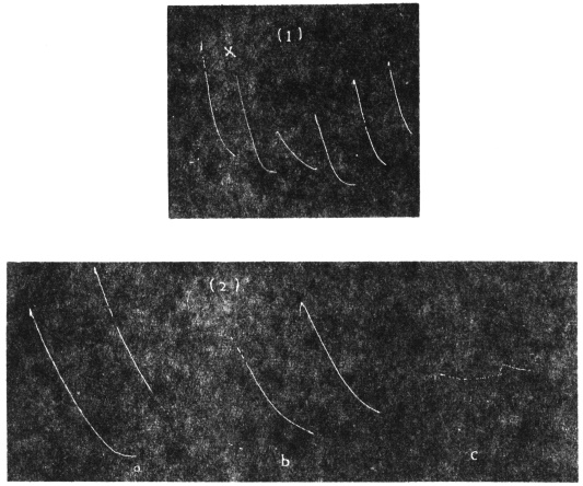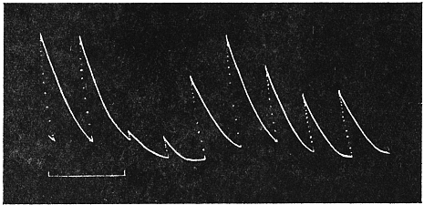 The investigation of this subject was rendered possible by the successful device of my Oscillating Recorder. A very light glass fibre was used for the construction of the lever, which was supported on jewel bearings. The short arm of the lever was 2 cm. in length, and the long arm 8 cm. This gave a magnification of 4 times. But it is quite easy to increase the magnification to 10 times or more.