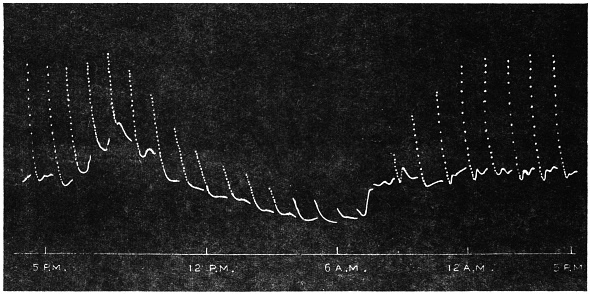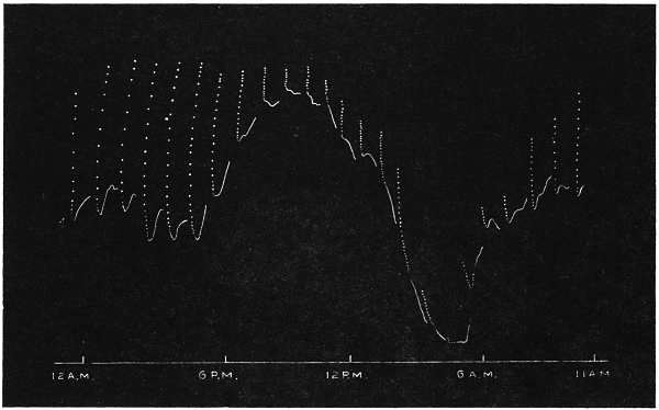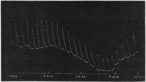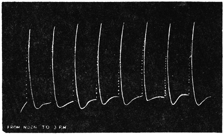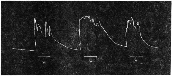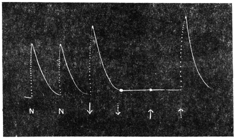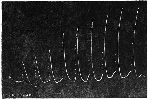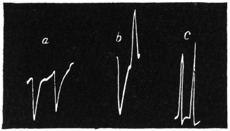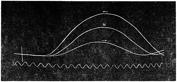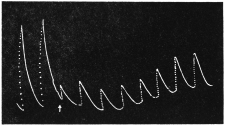 The record obtained in this way is very perfect. Not only is the effect of an external agent shown by variation in the amplitude and frequency of pulsations, but the change of speed in any phase of the pulse becomes automatically recorded.