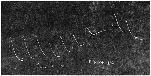 I have shown (page 198) that a growing organ under stimulus, undergoes an incipient contraction as shown in the responsive retardation of its rate of growth; that this retardation increases with the intensity of the incident stimulus till growth becomes arrested. Above this critical intensity the induced contraction causes an actual shortening of the organ. There is no breach of continuity in the increasing contractile reaction, which at various stages appears as a retardation, an arrest of growth or a marked shortening of length of the organ.