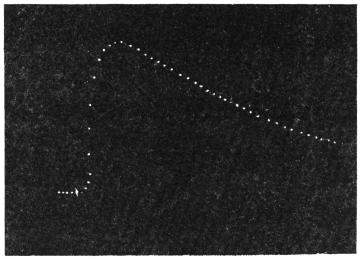 Action of Ultra-violet rays: Experiment 97.—The source of light was a quartz mercury-vapour lamp. The effect was so intense that, to keep the record within the plate, I had to reduce the period of exposure to half, i.e., to five seconds. The responsive movement was initiated within six seconds of the application of light. The intensity and the rapidity of reaction is independently evidenced by the more erect curve of response (Fig. 91).