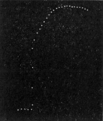 Fig. 214.—Record of leaf of Mimosa after amputation of sub-petioles. The leaf fell up to 2-30 p.m., and rose till 5 p.m., after which there is a spasmodic fall. (Successive dots at intervals of 15 minutes.)