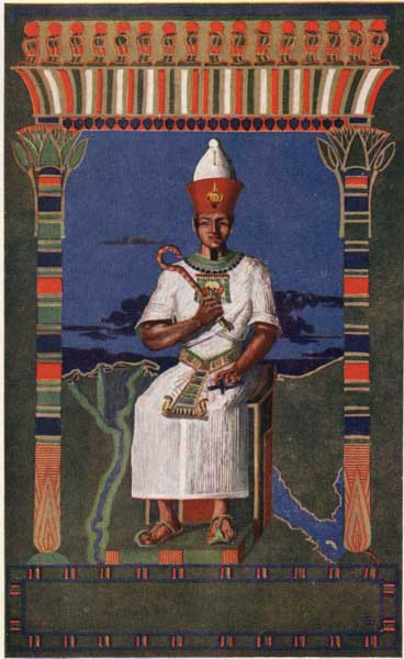 They had a lot of different beliefs about the life after death, some of them rather confusing, and difficult to understand; but I shall tell you only the main things and the simplest things which they believed. They said, then, that very long ago, when the world was young, there was a great and good King called Osiris, who reigned over Egypt, and was very good to his subjects, teaching them all kinds of useful knowledge. But Osiris had a wicked brother named Set, who hated him, and was jealous of him. One day Set invited Osiris to a supper, at which he had gathered a number of his friends who were in the plot with him. When they were all feasting gaily, he produced a beautiful chest, and offered to give it to the man who fitted it. One after another they lay down in the chest, but it fitted none of them. Then at last Osiris lay down in it, and as soon as he was inside, his wicked brother and the other plotters fastened the lid down upon him, and threw the chest into the Nile. It was carried away by the river, and at last was washed ashore, with the dead body of the good King still in it.