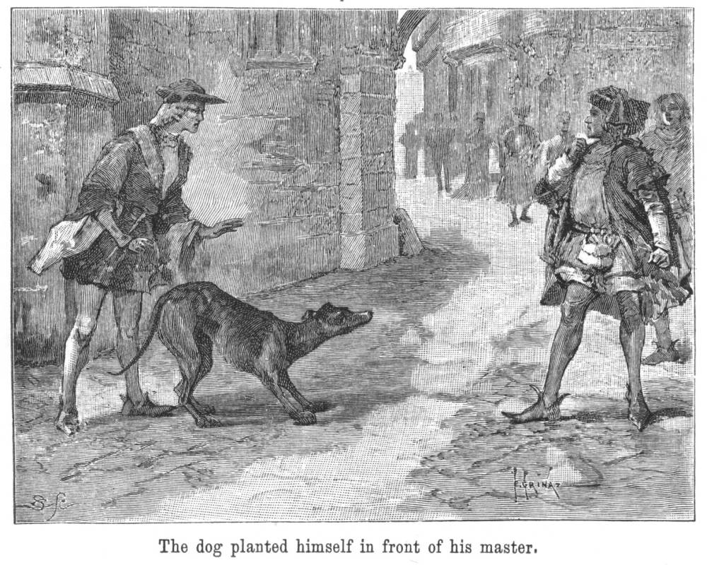 After this, the greyhound went to live with the young Sieur de Narsac. He followed the knight wherever he went. He slept in his room and ate from his hand. He seemed to be as much devoted to his new master as he had been to the old.