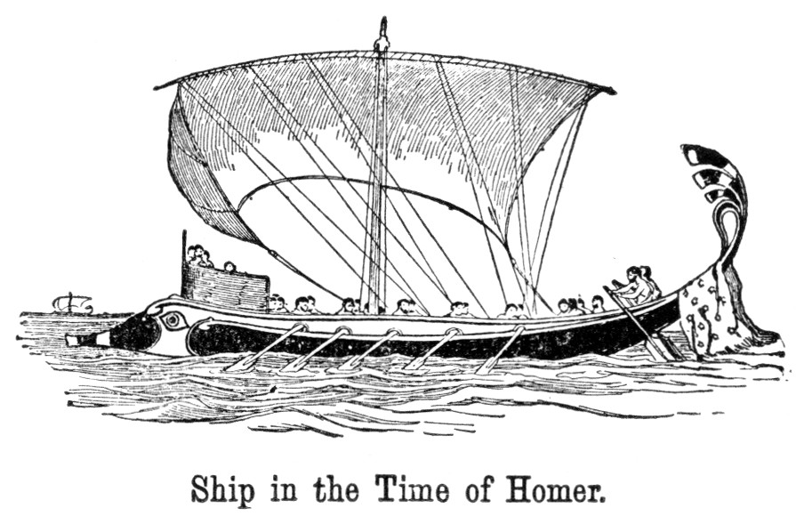 Then some of the lads brought in wood, and split it, and lighted a blazing fire; and others skinned the deer and quartered them, and set them to roast before the fire; and while the venison was cooking they bathed in the snow torrent, and washed away the dust and sweat. And then all ate till they could eat no more—for they had tasted nothing since the dawn—and drank of the clear spring water, for wine is not fit for growing lads. And when the remnants were put away, they all lay down upon the skins and leaves about the fire, and each took the lyre in turn, and sang and played with all his heart.