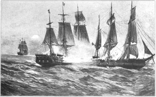 Captain Biddle had weighed anchor not alone, however, but in company with the frigates United States and Macedonian, going from New York through the Sound, as there was then a large British blockading force off Sandy Hook. The little American squadron was under the command of Commodore Decatur.