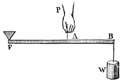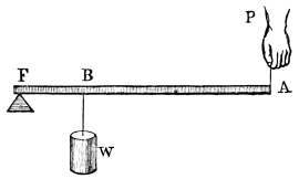 61 In this form of lever the power is applied between the fulcrum and the weight to be raised. The mass to be elevated is the body of the insect, bat, or bird,—the force which resides in the living pinion (aided by the inertia of the trunk) representing the power, and the air the fulcrum.