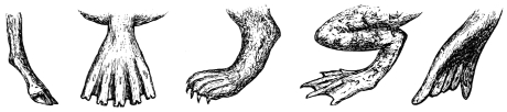 31 Feet designed for swimming, grasping trees, or securing prey, do not operate to advantage on a flat surface. The awkward waddle of the swan, parrot, and eagle when on the ground affords illustrations.