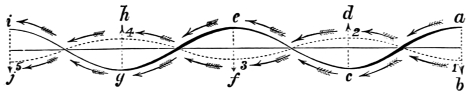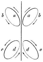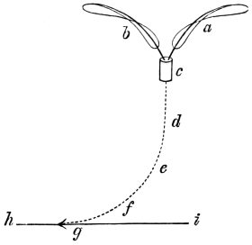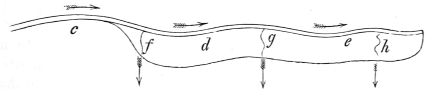 119 The artificial currents produced by the wing during its descent may be readily seen by partially filling a chamber with steam, smoke, or some impalpable white powder, and causing the wing to descend in its midst. By a little practice, the eye will not fail to detect the currents represented at d, e, f, g, h, i, l, m, o, p, q, r of fig. 129, p. 253.