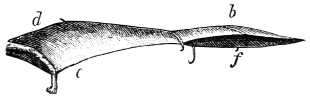 84 The furcula are usually united to the anterior part of the sternum by ligament; but in birds of powerful flight, where the wings are habitually extended for gliding and sailing, as in the frigate-bird, the union is osseous in its nature. “In the frigate-bird the furcula are likewise anchylosed with the coracoid bones.”—Comp. Anat. and Phys. of Vertebrates, by Prof. Owen, vol. ii. p. 66.